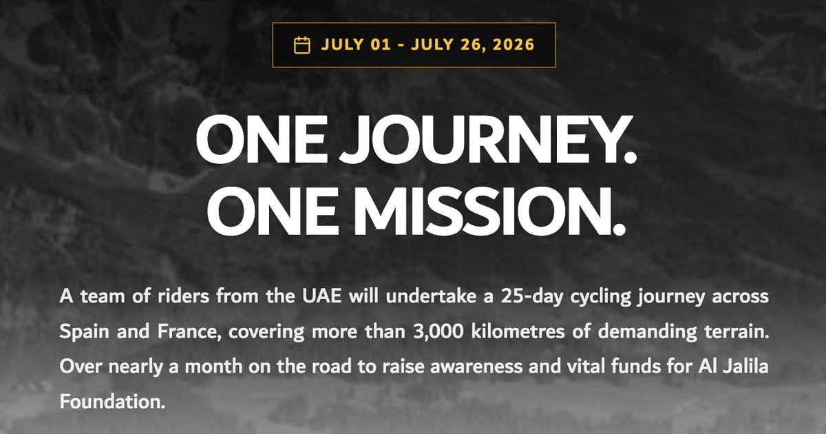 From 1 July 2026, a team of 13 riders from the UAE will embark on a 25-day charitable endurance cycling challenge from Barcelona to Paris, inspired by one of the most demanding and revered routes in professional cycling. Spanning 3,333 kilometres and over 54,000 metres of elevation, the journey takes the team through Spain and France, following roads synonymous with the sport's greatest test of endurance. Over nearly a month on the road, the team will raise awareness and vital funds for the Al Jalila Foundation.